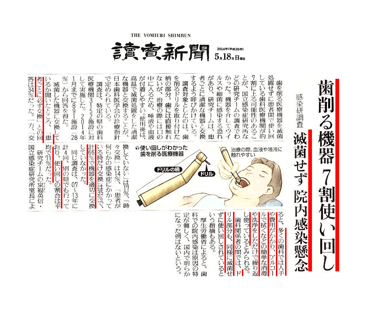清潔か不潔かはただ単に居心地がいいかどうかだけではないのです。院内感染といって、汚染された治療器具によって感染症に罹ってしまうことも可能性としてあります。実際のところ、確率としてはとても低い数字でしょう。1/1,000か1/10,000か、もっと低いかもしれません。